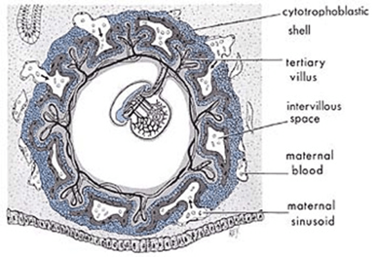 Similarly again, the placenta surrounding the embryo also consists of three layers: the amnion (the internal membrane around the fetus), the chorion (the middle amnion layer) and the decidua (outer amnion layer.)5